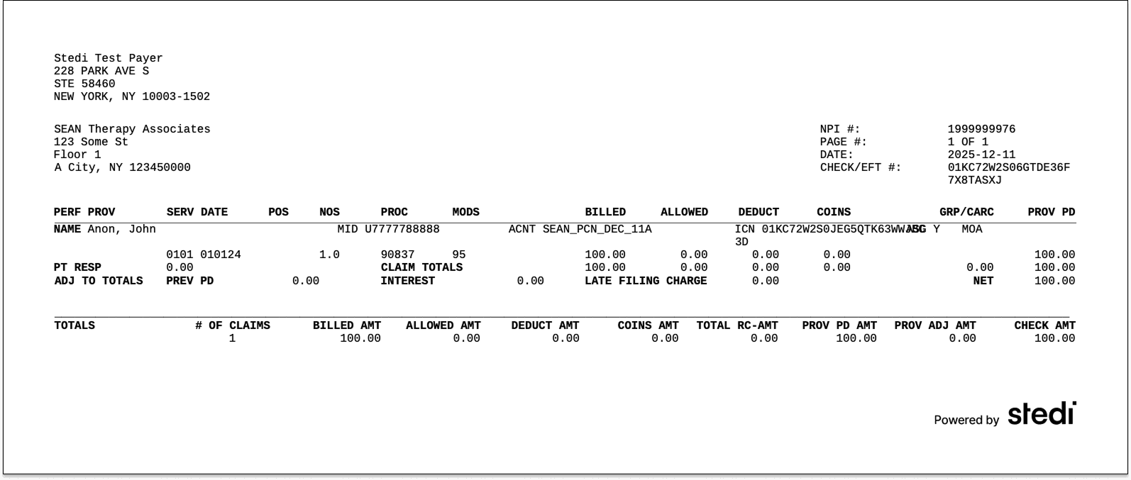 You can now programmatically retrieve PDF versions of your 835 Electronic Remittance Advice (ERAs) using Stedi’s new ERA PDF API endpoint. The transactionId path parameter is the 835 ERA's transaction ID: