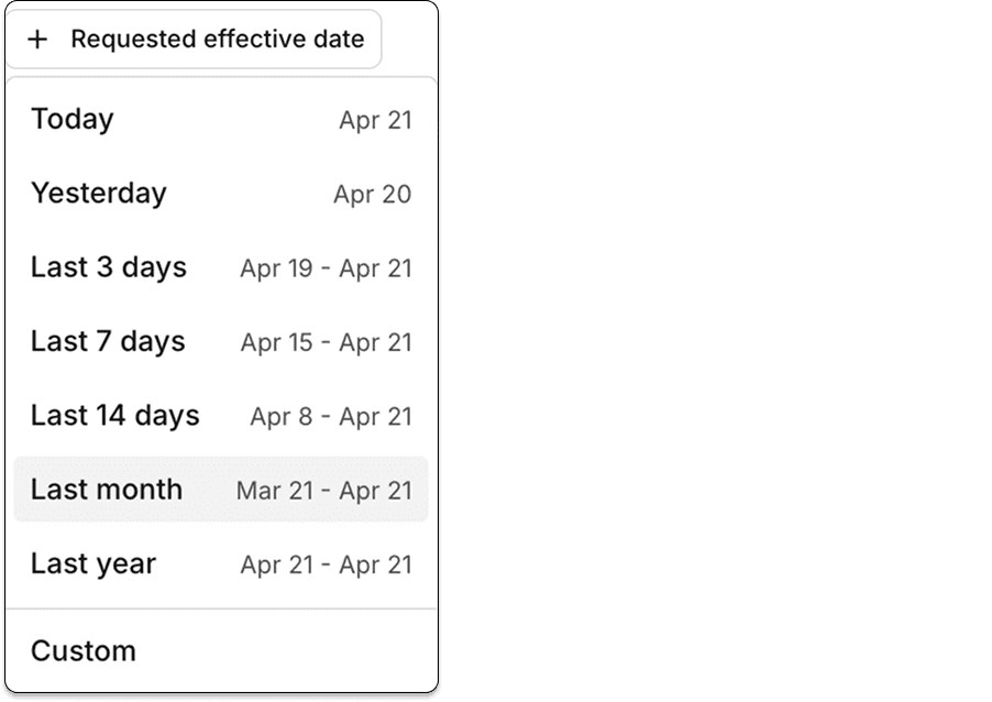Filtering and sorting by requested effective dates