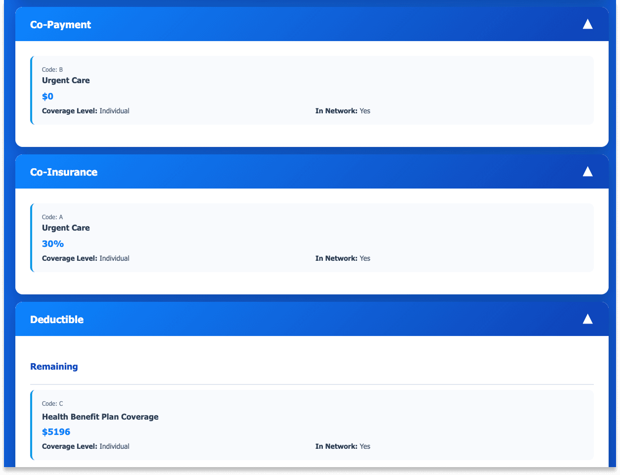 Details like co-pay, deductible, primary care physician (PCP) assignment, and network status – whether a service was in- or out-of-network – weren't available at the point of service.